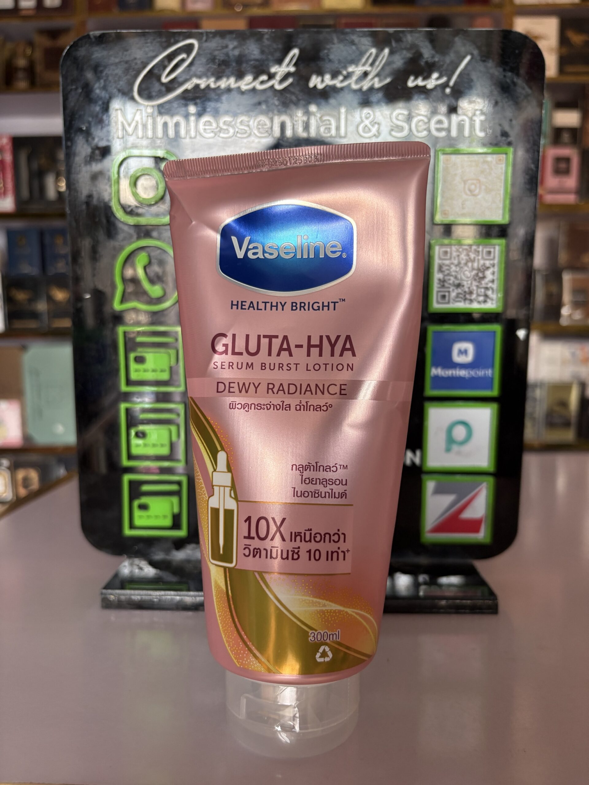 Vaseline Healthy Bright Gluta-Hya Serum Burst Lotion is a lightweight, fast-absorbing body lotion designed to brighten and deeply hydrate skin using GlutaGlow™ technology, which is 10X more powerful than Vitamin C. It features Hyaluron to boost moisture for a dewy look and Pro-Retinol to exfoliate and even out skin tone